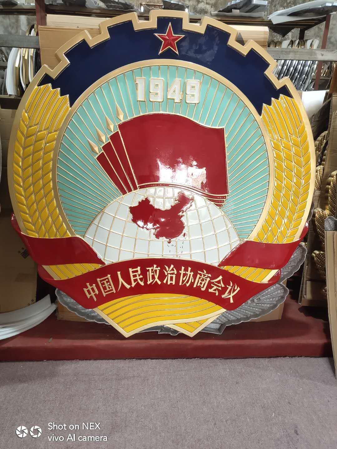 | 安裝方式 | 保定1米政協徽-小徽章背面都配有穿掛耳孔,釘子釘在墻上,再用穿鐵絲鋼絲,適合安裝在辦公室/會議室會場等。大徽后面為膨脹螺絲孔,安裝需要定做鐵架,鐵架固定墻面上后,再將徽章固定在鐵架上。玻璃幕墻也是需要鐵架方式安裝。 |