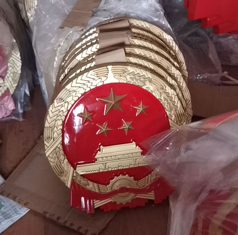 | 安裝方式 | 襄陽小國徽現貨-小徽章背面都配有穿掛耳孔,釘子釘在墻上,再用穿鐵絲鋼絲,適合安裝在辦公室/會議室會場等。大徽后面為膨脹螺絲孔,安裝需要定做鐵架,鐵架固定墻面上后,再將徽章固定在鐵架上。玻璃幕墻也是需要鐵架方式安裝。 |